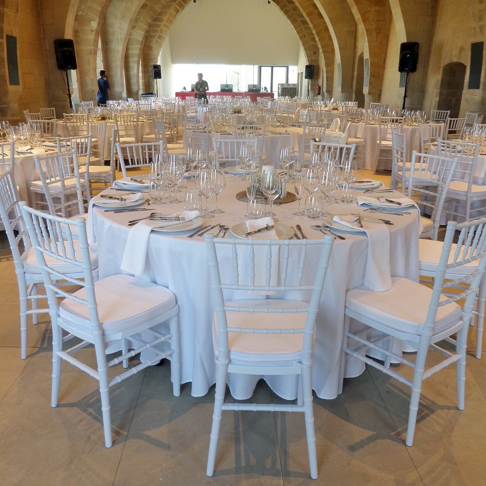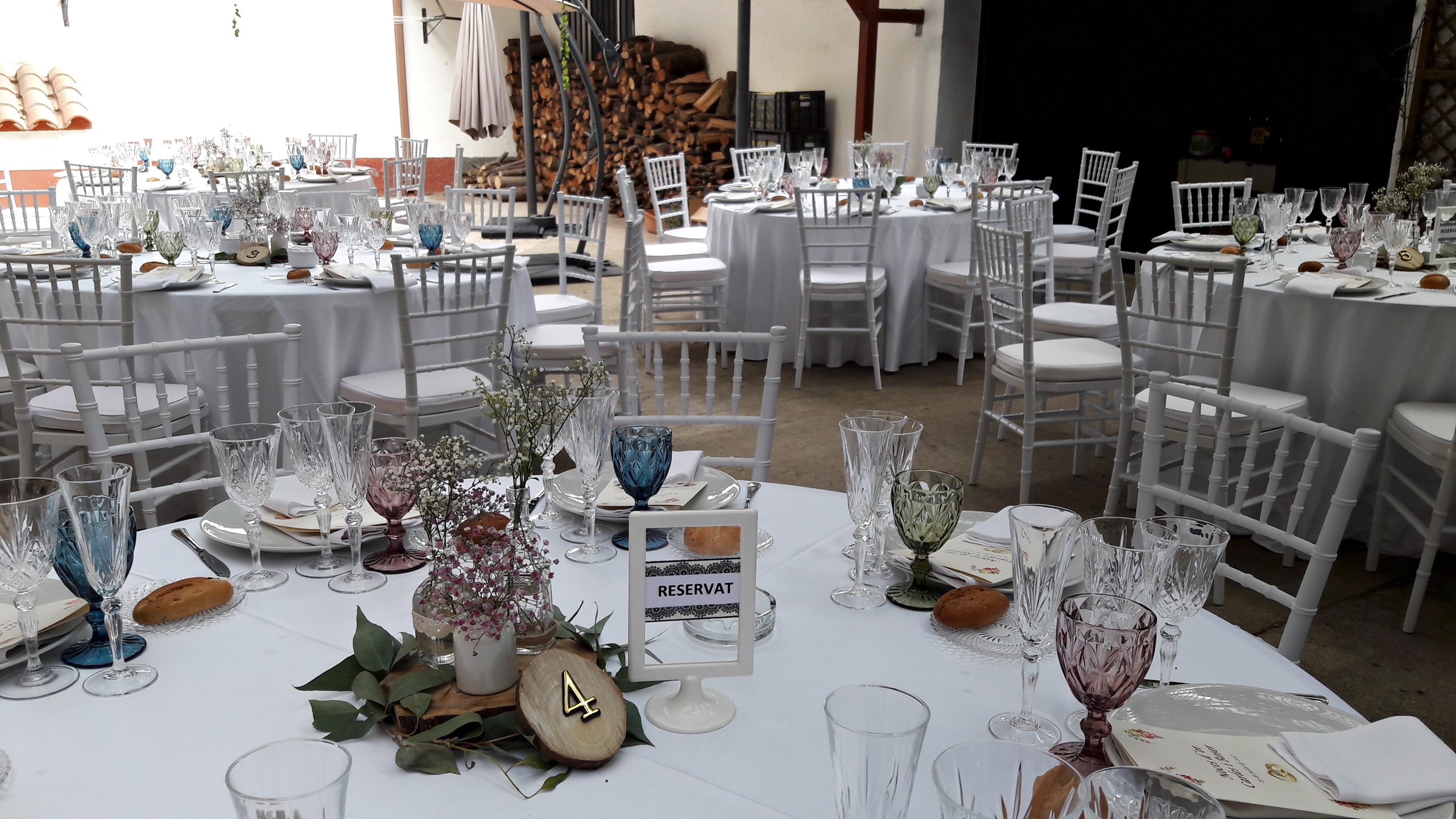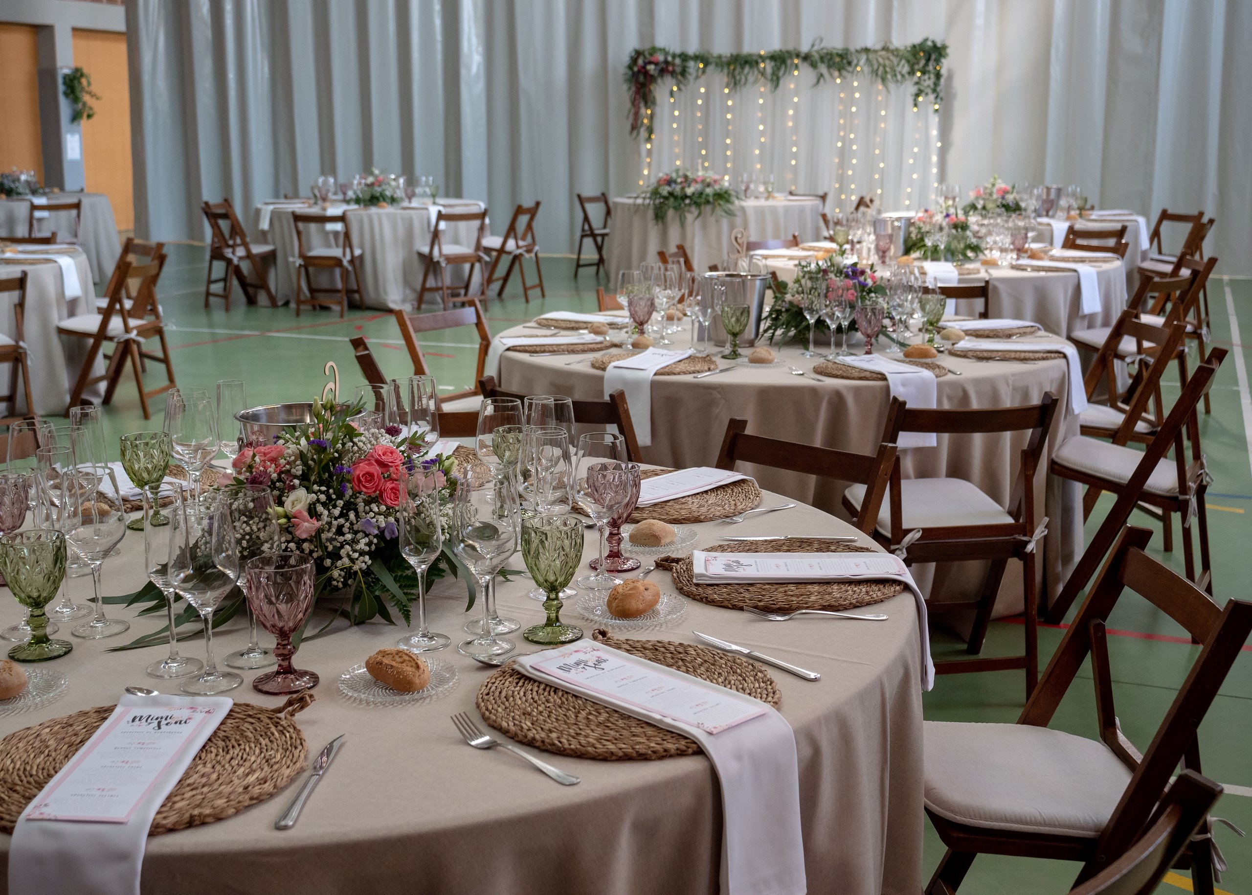 Les taules poden vestir-se amb estovalles, anar nues o decorar-se amb flors i elements naturals, segons l’estil de l’acte. Les cadires, seleccionades amb criteri, garanteixen la comoditat dels convidats durant tota la celebració, sense renunciar a una bona presència visual.