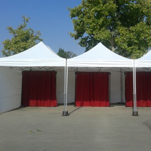 Carpa plegable blanca de 3m x 3m . Es poden unir a les de 4,5 x 3 m i afegir laterals per tancar-les.