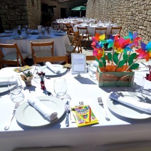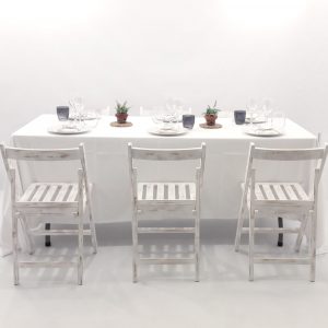 Estovalles blanques de diferents mides per a taules rectes i quadrades. Els quadrats també s’utilitzen per cobrir les taules rodones. Consultar mides.