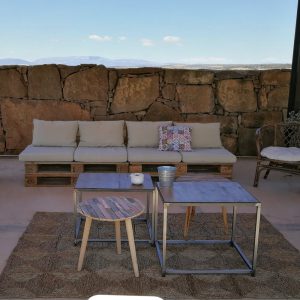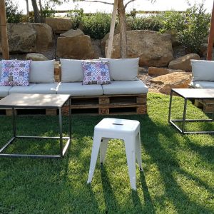 Taula de centre estil industrial, queda bé en qualsevol chill out.